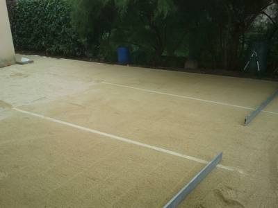 la pellicule d’un centimètre au dessus des alvéoles peut bouger mais c’est très rapide à remettre en place avec un râteau ou un tapis (comme au tennis…)